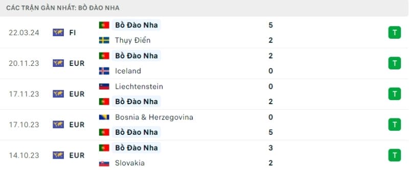 Phong độ thi đấu Slovenia vs Bồ Đào Nha