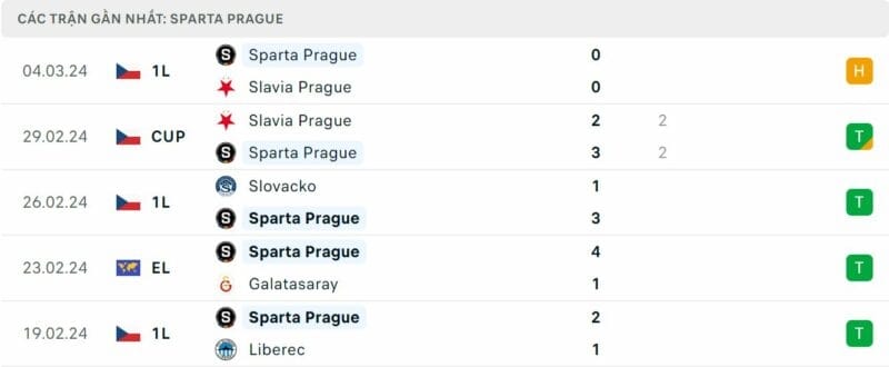 Sau trận thua Galatasaray, Sparta Praha đã trải qua chuỗi không thắng ở 15 trận sân khách gần đây nhất của họ tại Cúp châu Âu (6 hòa, 9 thua). Đoàn quân của HLV Brian Priske sẽ tìm cách tận dụng tối đa lợi thế sân nhà để cố gắng thay đổi điều đó, nơi đội bóng của ông đã thắng 4 trong 5 trận sân nhà gần nhất ở đấu trường châu lục (hòa 1).
