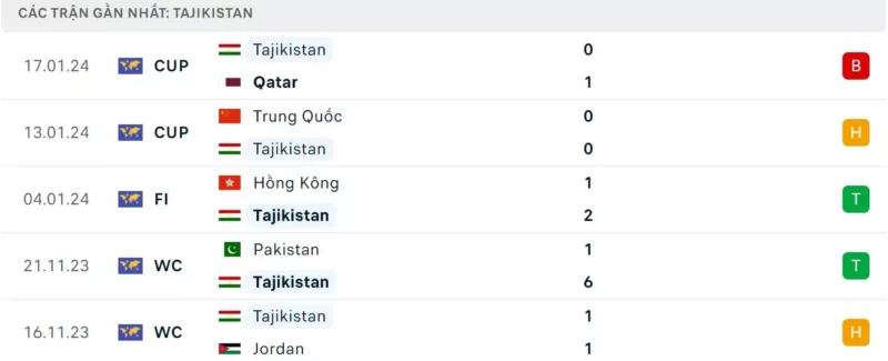 Thành tích đối đầu Tajikistan vs Lebanon: