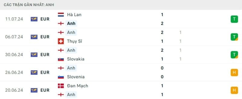 Phong độ Tây Ban Nha vs Anh