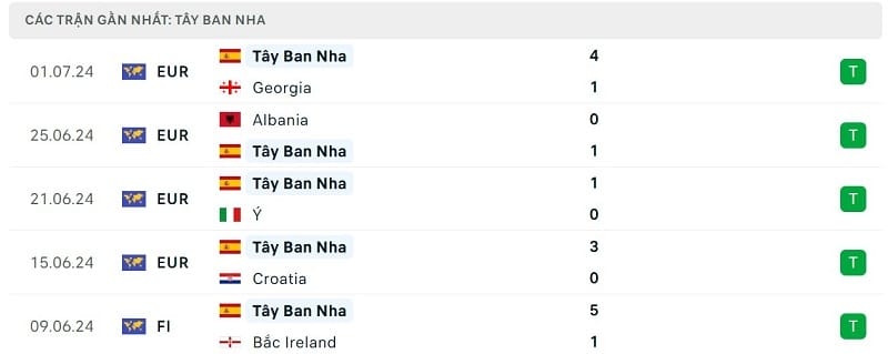 Ở trận đấu vừa qua tại vòng 16 đội, ĐT Tây Ban Nha đã thể hiện được sức mạnh hoàn toàn vượt trội so với Georgia. Dẫu đối thủ có được bàn mở tỷ số ở phút 18, La Roja vẫn bình tĩnh triển khai lối chơi và ghi được đến 4 bàn thắng, qua đó giành chiến thắng với tỷ số 4-1 chung cuộc.
