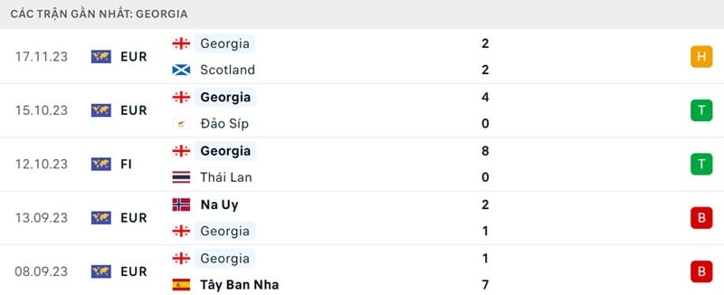 Thành tích đối đầu Tây Ban Nha vs Georgia