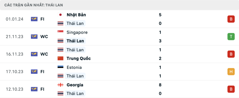 Điều mà người hâm mộ Thái Lan cảm thấy lo lắng chính là phong độ của đội nhà. ĐT Thái Lan có sự chuẩn bị khá tệ trước thềm Asian Cup 2023. Họ chỉ thắng được duy nhất 1 trận trong 5 trận đấu gần nhất. Đó là chiến thắng trước đối thủ yếu hơn Singapore tại vòng loại hai World Cup 2026. Trước đó, người Thái thất thủ 1-2 trước Trung Quốc. Trong trận giao hữu cuối cùng chuẩn bị cho Asian Cup, Voi chiến thảm bại 0-5 trước Nhật Bản.