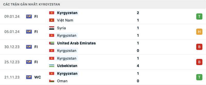 Ở phía bên kia chiến tuyến, ĐT Kyrgysztan cũng không có phong độ quá cao. Trong số 4 trận giao hữu trước giải, họ thắng 1, hòa 1 và thua 2. Chiến thắng duy nhất chính là thắng lợi trước ĐT Việt Nam.