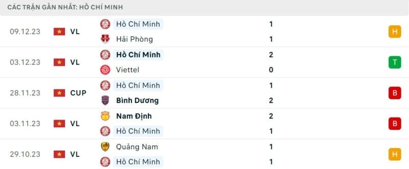 Phong độ gần đây Thanh Hóa vs TPHCM: