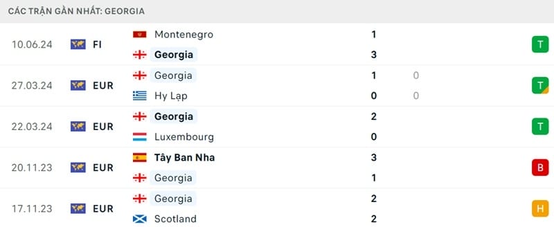 Phong độ gần đây Thổ Nhĩ Kỳ vs Georgia