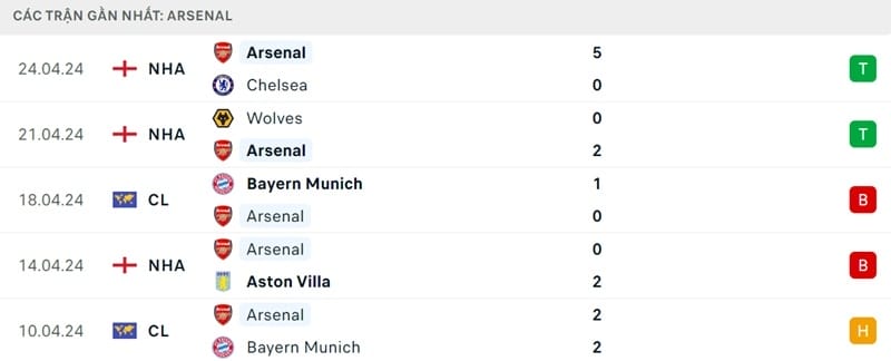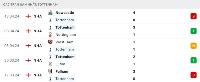 Phong độ Tottenham vs Arsenal