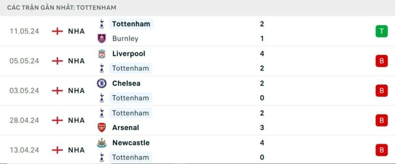 Phong độ gần đây Tottenham vs Man City