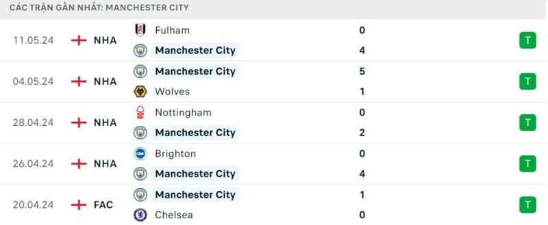 Chung cuộc, trận đấu khép lại với tỷ số 2-0 nghiêng về Man City. Chiến thắng này giúp Man City vươn lên dẫn đầu Ngoại hạng Anh 2023/24 với tổng cộng 88 điểm. Đoàn quân của HLV Pep Guardiola hơn đội xếp sau là Arsenal 2 điểm và đang có lợi thế rất lớn trong cuộc đua vô địch.