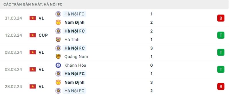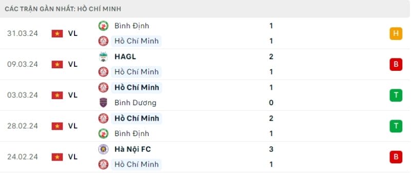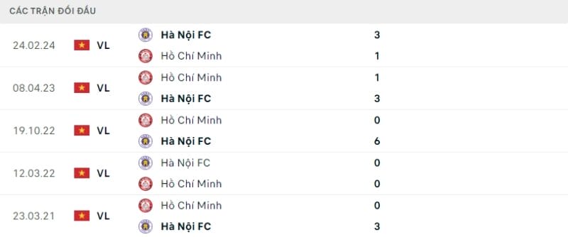 Phong độ TP.HCM vs Hà Nội