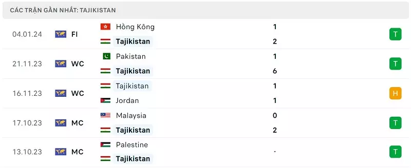 Phong độ của ĐT Tajikistan thời gian qua cũng khá ấn tượng. Đội bóng đến từ Trung Á không nhận thất bại nào trong 5 trận đấu gần nhất (4 thắng, 1 hòa). Đó sẽ là điểm tựa tinh thần để thầy trò HLV Peter Segrt thi đấu tự tin trong trận ra quân Asian Cup 2023.
