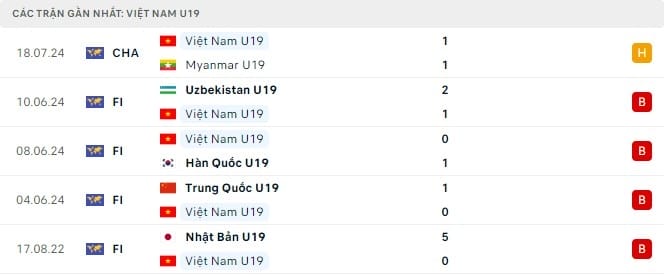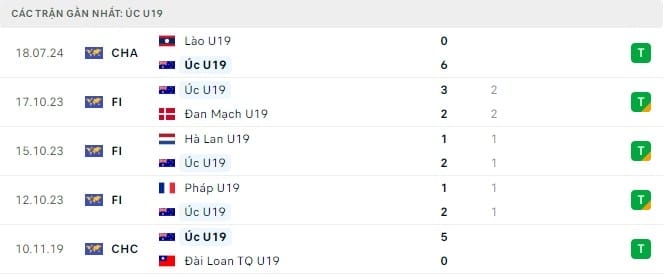 Phong độ gần đây U19 Úc vs U19 Việt Nam