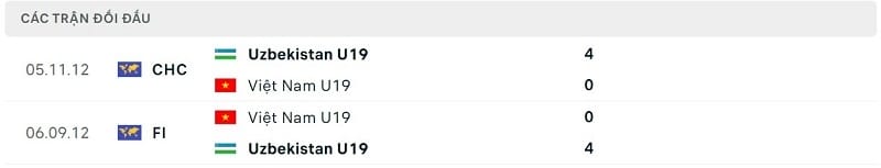 Thành tích đối đầu U19 Uzbekistan vs U19 Việt Nam