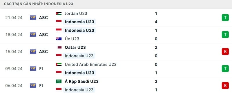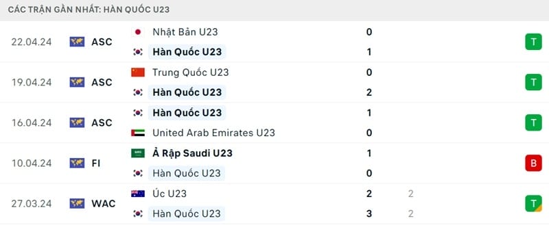 Phong độ U23 Hàn Quốc vs U23 Indonesia