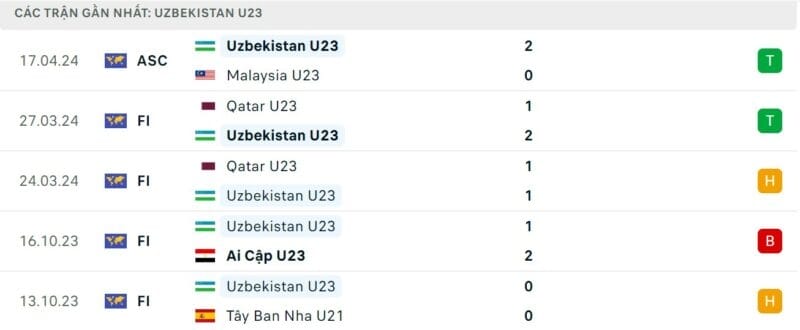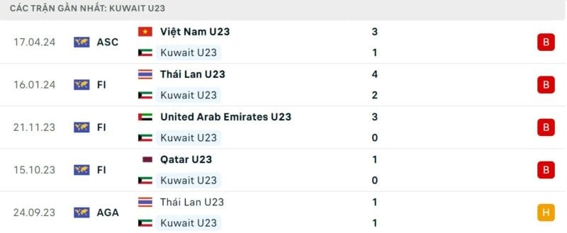 Phong độ gần đây U23 Kuwait vs U23 Uzbekistan