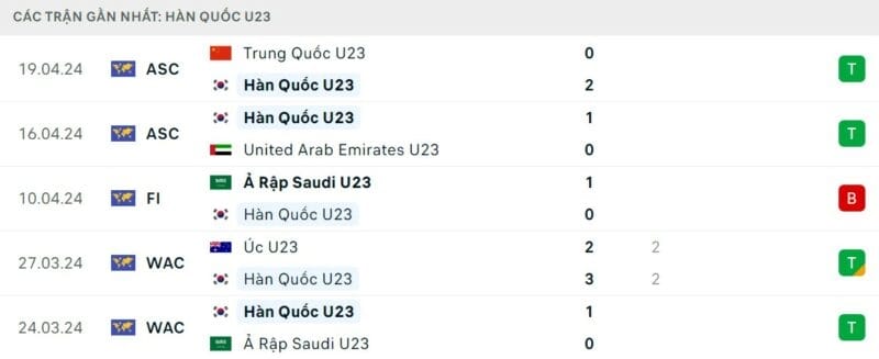 Phong độ U23 Nhật Bản vs U23 Hàn Quốc