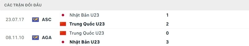 Thành tích đối đầu U23 Nhật Bản vs U23 Trung Quốc