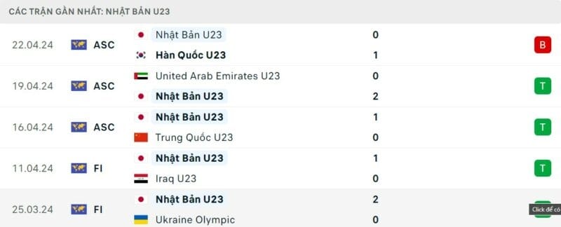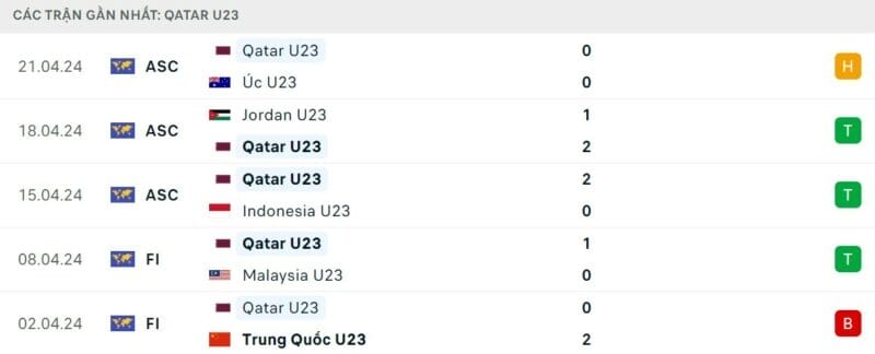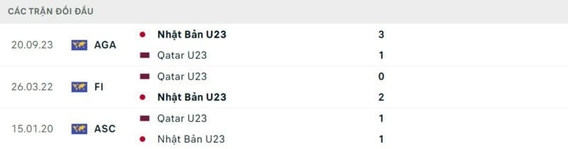 Thành tích đối đầu U23 Qatar vs U23 Nhật Bản