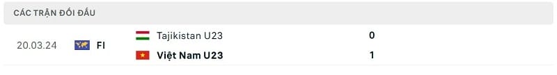 Thành tích đối đầu U23 Tajikistan vs U23 Việt Nam