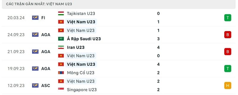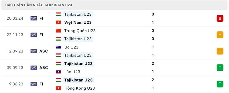 Phong độ U23 Tajikistan vs U23 Việt Nam