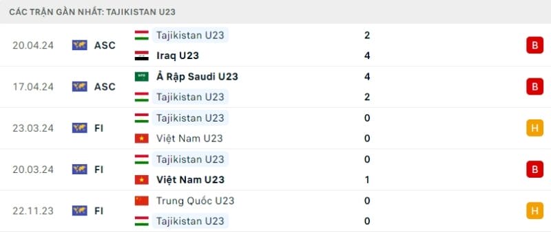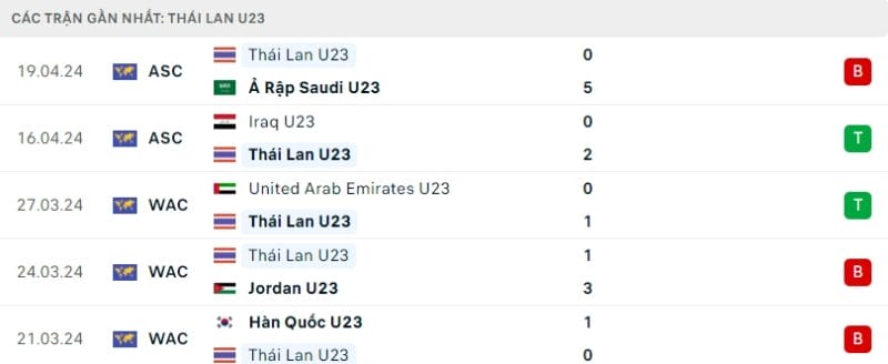 Phong độ thi đấu U23 Thái Lan vs U23 Tajikistan