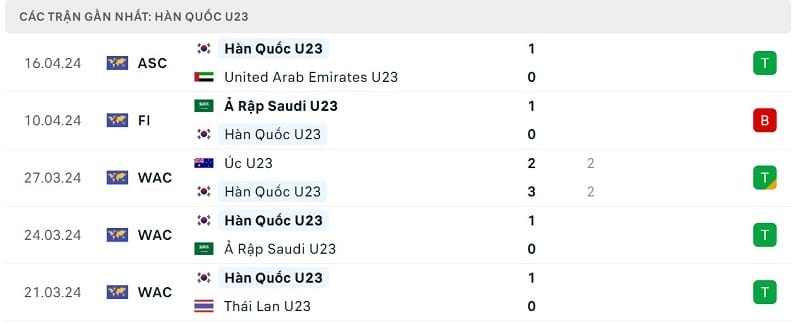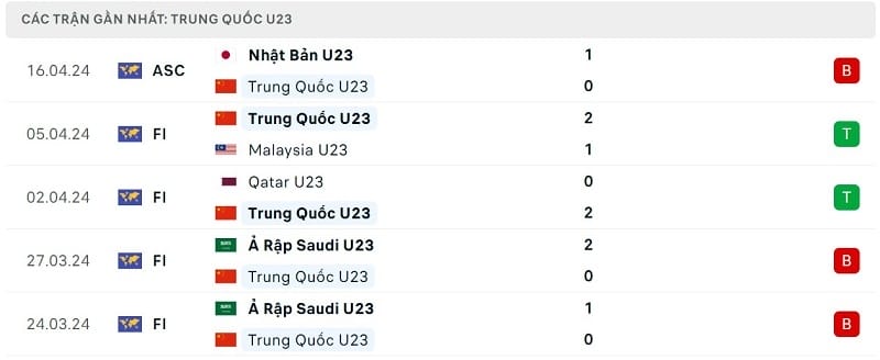 Phong độ U23 Trung Quốc vs U23 Hàn Quốc