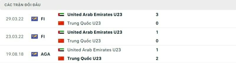 Thành tích đối đầu U23 UAE vs U23 Trung Quốc: