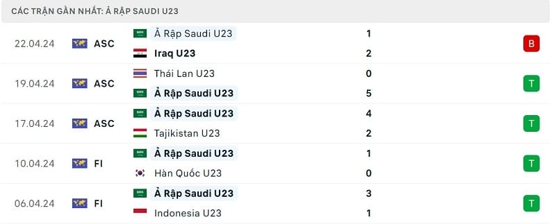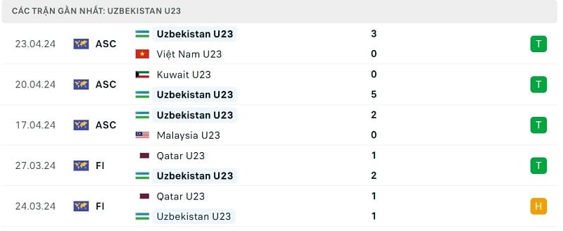 Phong độ U23 Uzbekistan vs U23 Ả Rập Xê Út