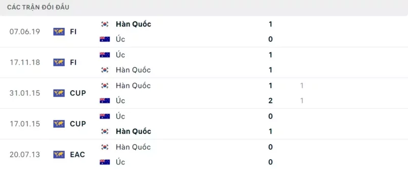 Thành tích đối đầu Úc vs Hàn Quốc:
