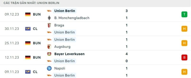 Phong độ gần đây Union Berlin vs Real Madrid: