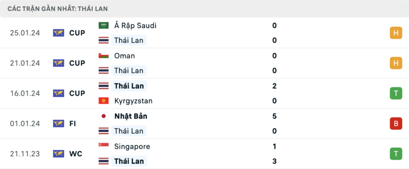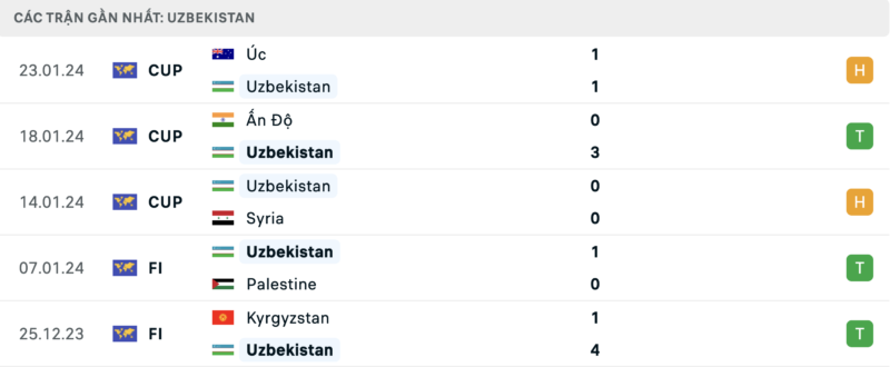 Phong độ Uzbekistan vs Thái Lan