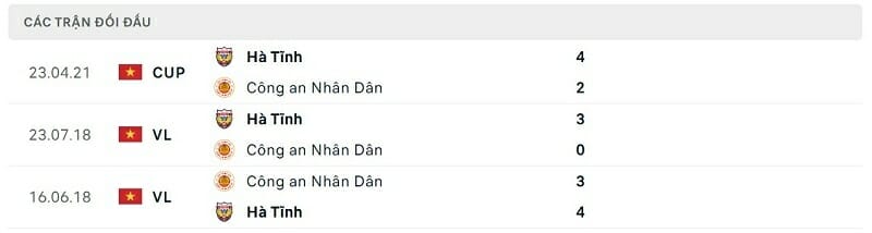 Thành tích đối đầu CAHN vs Hà Tĩnh: