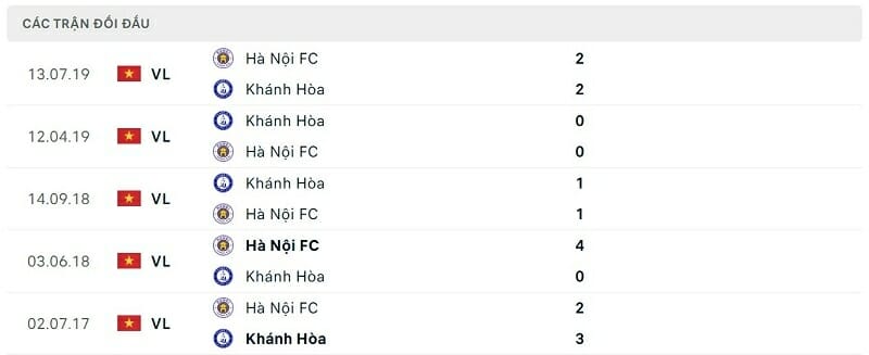 Thành tích đối đầu Khánh Hòa vs Hà Nội