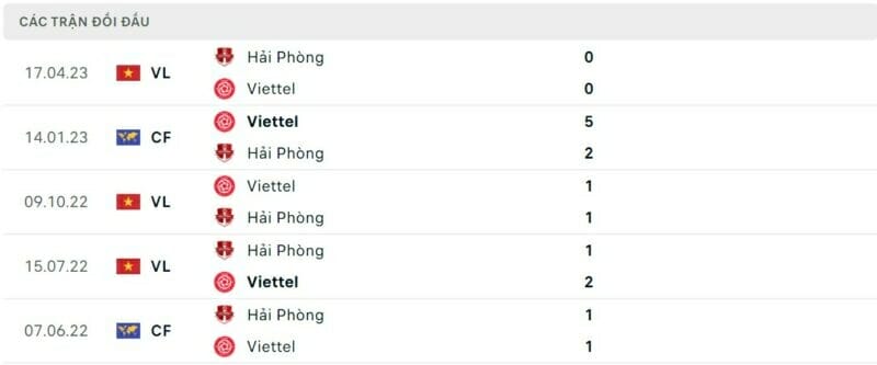 • Thành tích đối đầu Viettel vs Hải Phòng