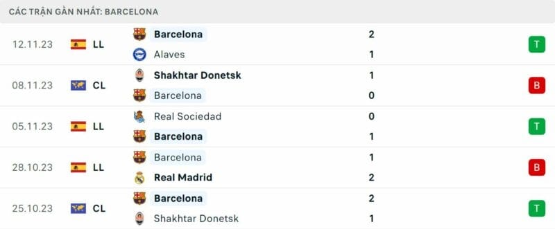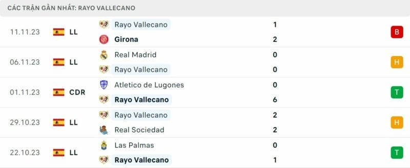 Phong độ Vallecano vs Barca
