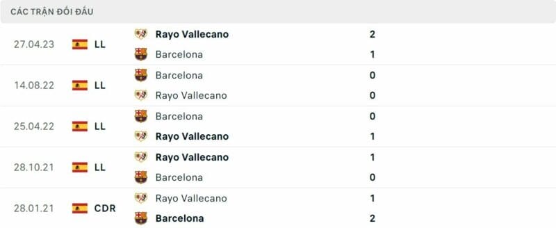 Thành tích đối đầu Vallecano vs Barca