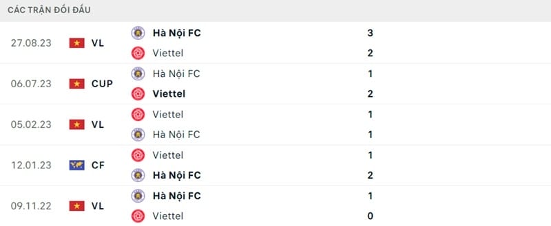 Đứng dưới đại kình địch nhưng không đồng nghĩa cựu vương V-League yếu hơn đội chủ nhà. Thực tế chỉ ra, trong 5 trận chính thức gần nhất, Hà Nội cho thấy họ vẫn là đối thủ khó chịu của Viettel với 3 trận thắng, 1 trận hòa và 1 trận thua. Cuộc đối đầu gần nhất diễn ra vào ngày 27/08/2023, với tỷ số 3-2 nghiêng về Hà Nội.