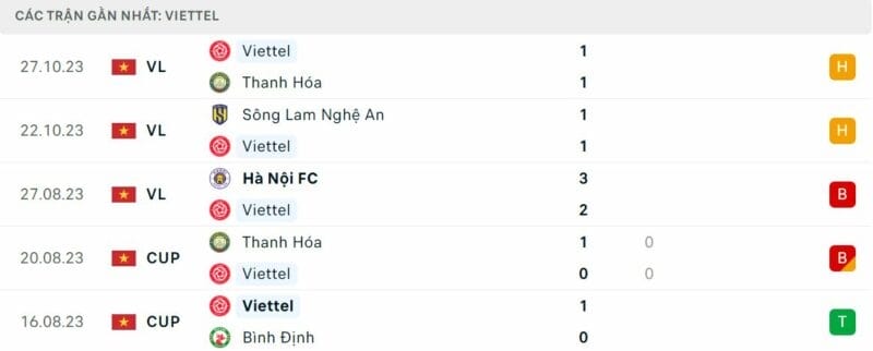 Phong độ Viettel vs Hà Tĩnh