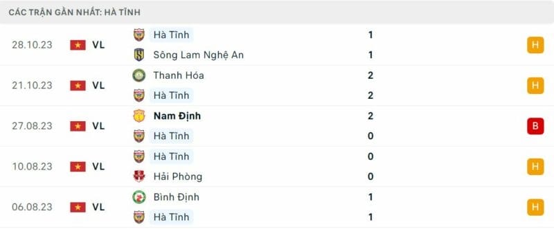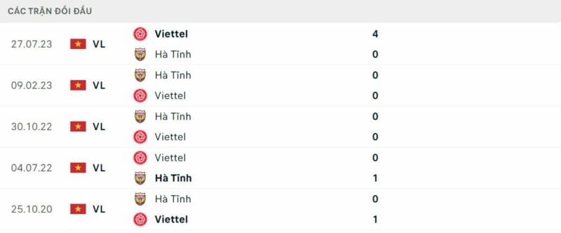 Thành tích đối đầu Viettel vs Hà Tĩnh