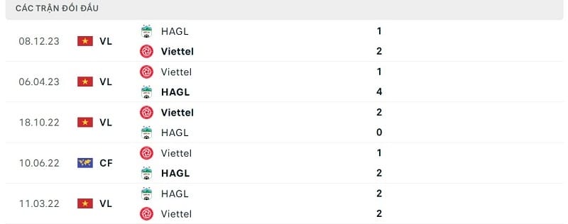 Thành tích đối đầu Viettel vs HAGL