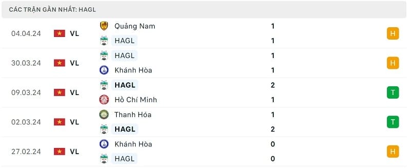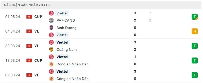 Phong độ Viettel vs HAGL