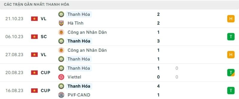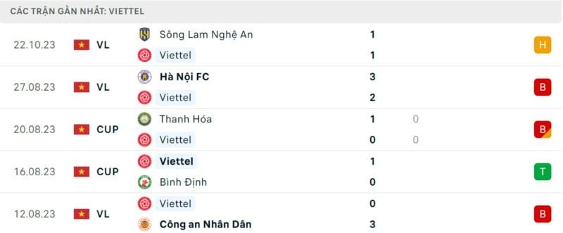Phong độ gần đây Viettel vs Thanh Hóa: