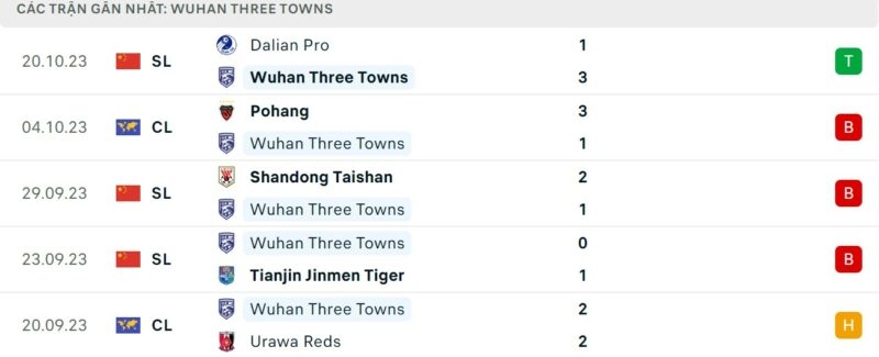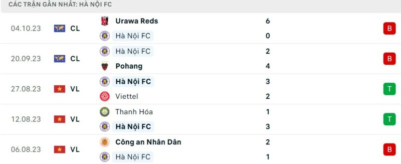 Phong độ gần đây Vũ Hán vs Hà Nội: