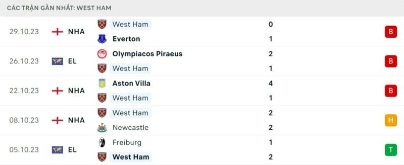 Ở phía bên kia chiến tuyến, đội chủ nhà West Ham lại có phong độ hoàn toàn trái ngược. Họ chưa biết mùi thắng ở 4 trận đấu gần nhất trên mọi đấu trường. Vào giữa tuần trước, đại diện nước Anh để thua trận đầu tiên tại đấu trường Châu Âu mùa này khi thất thủ trước Olympiacos. Thất bại đáng thất vọng với tỉ số 0-1 trước Everton hồi cuối tuần khiến cuộc khủng hoảng của Búa Tạ chưa có điểm dừng.