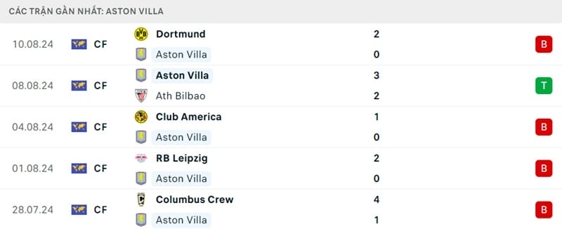 Kể từ đó, Villa đã tham gia 7 trận giao hữu trong suốt mùa hè. Trong đó, sau 5 lần ra sân gần nhất, thầy trò Emery thua 4 và chỉ thắng 1. Sự ra đi của Douglas Luiz và Moussa Diaby là một đòn giáng mạnh vào Villa. Dù sao thì Emery vẫn còn sở hữu nhiều cầu thủ chất lượng hàng đầu trong bối cảnh đội bóng vùng West Midland đặt mục tiêu tiếp tục xuất hiện ở top 4.
