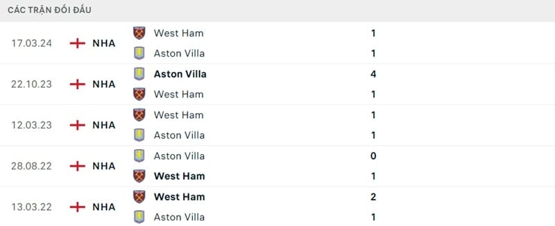 Aston Villa sẽ đến sân vận động London để tìm cách thay đổi thành tích tệ hại trước West Ham. Họ chỉ thắng 1/12 lần chạm trán gần nhất tại Premier League khi gặp Hammers và cũng không thắng bất kỳ trận nào trong 9 trận chạm trán trước đó giữa 2 CLB ở Premier League. Ngoài ra, Villa còn thua trận mở màn Premier League trong mỗi ba mùa giải gần đây nhất. CLB để thủng lưới 10 bàn trong khoảng thời gian này.