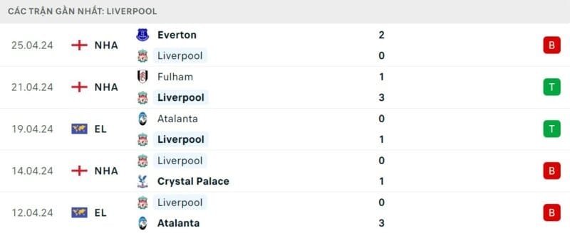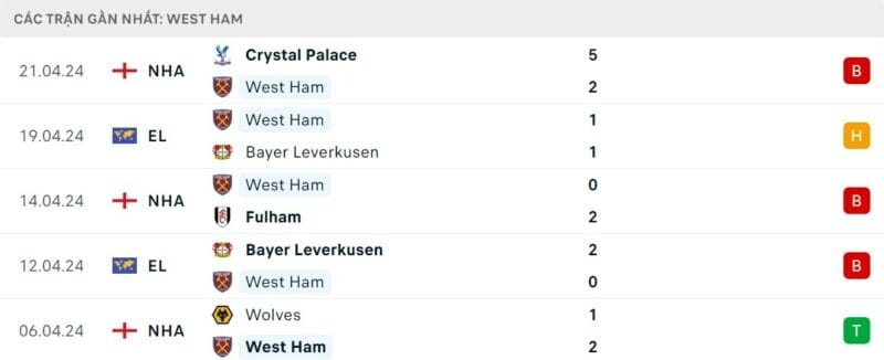 Phong độ West Ham vs Liverpool