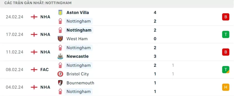 Phong độ gần đây Nottingham Forest vs Man United:
