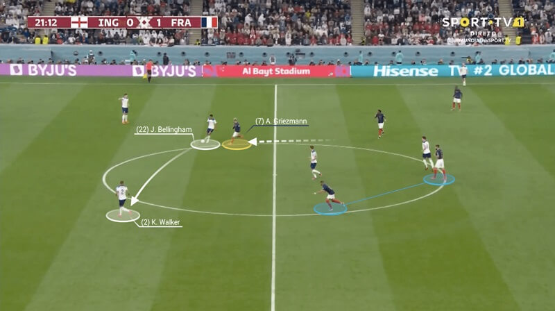 Ở World Cup 2018, Griezmann nhận vai trò số 10 và ghi được 4 bàn (nhiều nhất đội, ngang với Mbappe). Năm nay, anh hoạt động thấp hơn, gần như là một số 8. Rốt cuộc, ngôi sao 31 tuổi chưa nổ súng lần nào nhưng đã tạo ra 21 cơ hội để các đồng đội dứt điểm, 7 trong số đó được xem là các pha bóng “ngon ăn”.