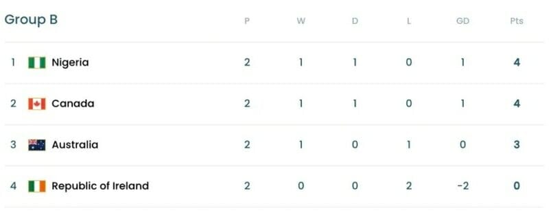 Nigeria đang sáng cửa nhất giành ngôi đầu bảng với 4 điểm sau 2 trận. Thậm chí, họ chỉ cần 1 điểm ở trận đấu trước Ireland, đội bóng đã bị loại thì cũng chắc suất đi tiếp. Kể cả có bị thua thì Đại Bàng xanh cũng còn cơ hội.